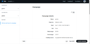 4:الان قمنا بالانشاء الحملة هنا المعلومات الخاصة بها